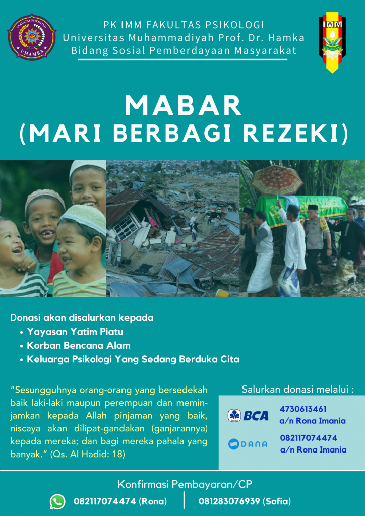 Bidang Sosial dan Pemberdayaan Masyarakat PK IMM Fakultas Psikologi UHAMKA 2021-2022 menyelenggarakan program kerja MABAR (Mari Berbagi Rezeki)